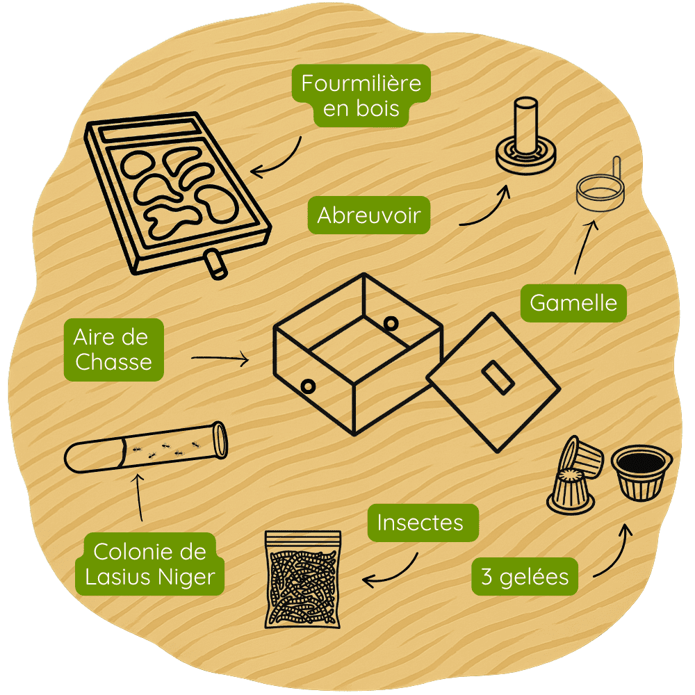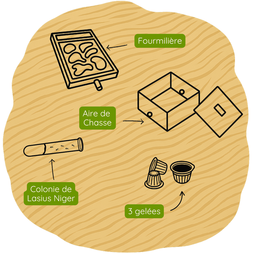 Ce kit complet a été conçu pour te permettre de te lancer facilement dans l’élevage de fourmis, même si tu débutes. Tu y trouveras tout le nécessaire pour installer ta première colonie de Messor barbarus dans les meilleures conditions, sans avoir besoin d’acheter quoi que ce soit en plus.