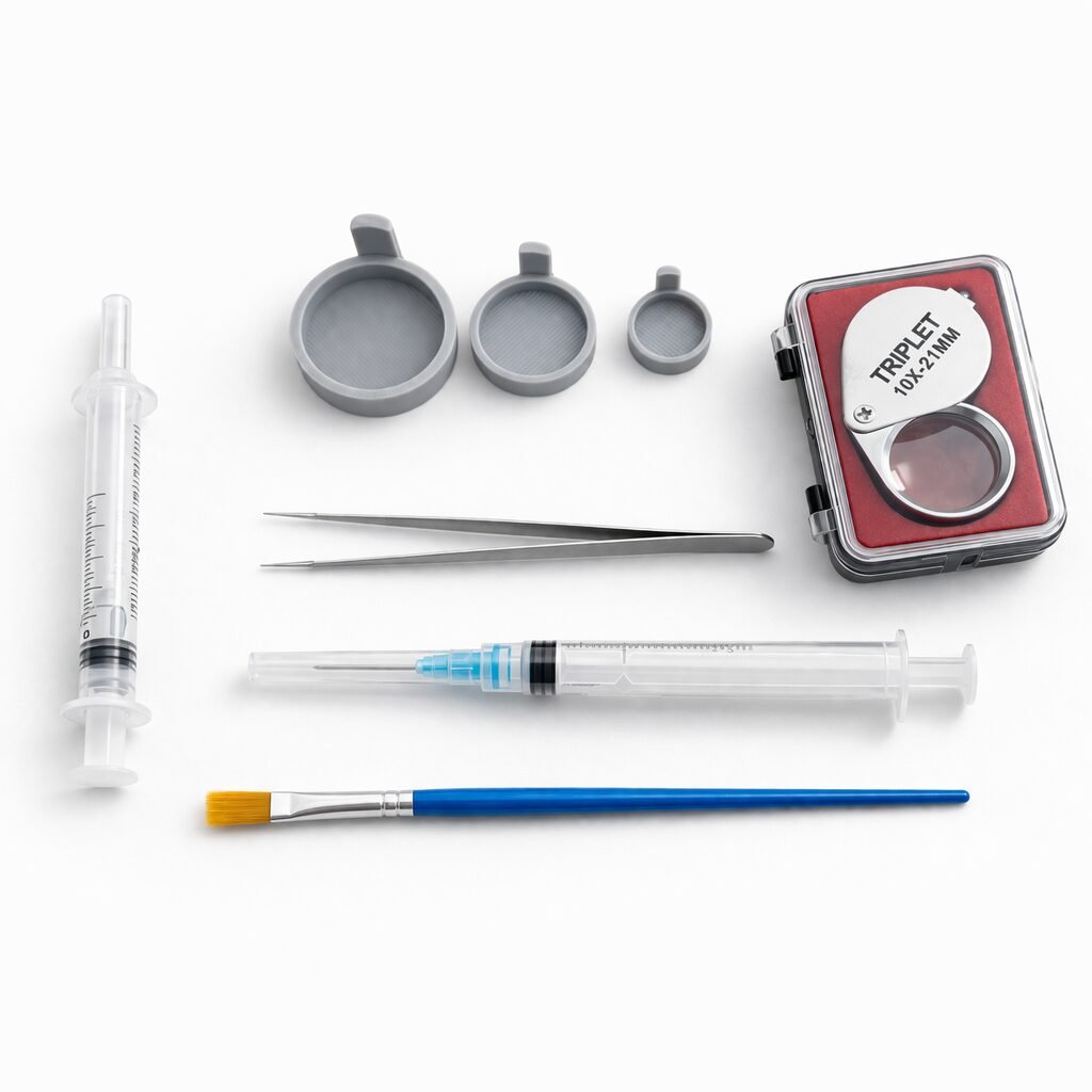 Loupe triplet 10x – 21mm : Pour observer tes fourmis de près sans les déranger. La qualité optique triplet te donne une image nette et sans déformation. Idéale pour inspecter les œufs, larves et reines.